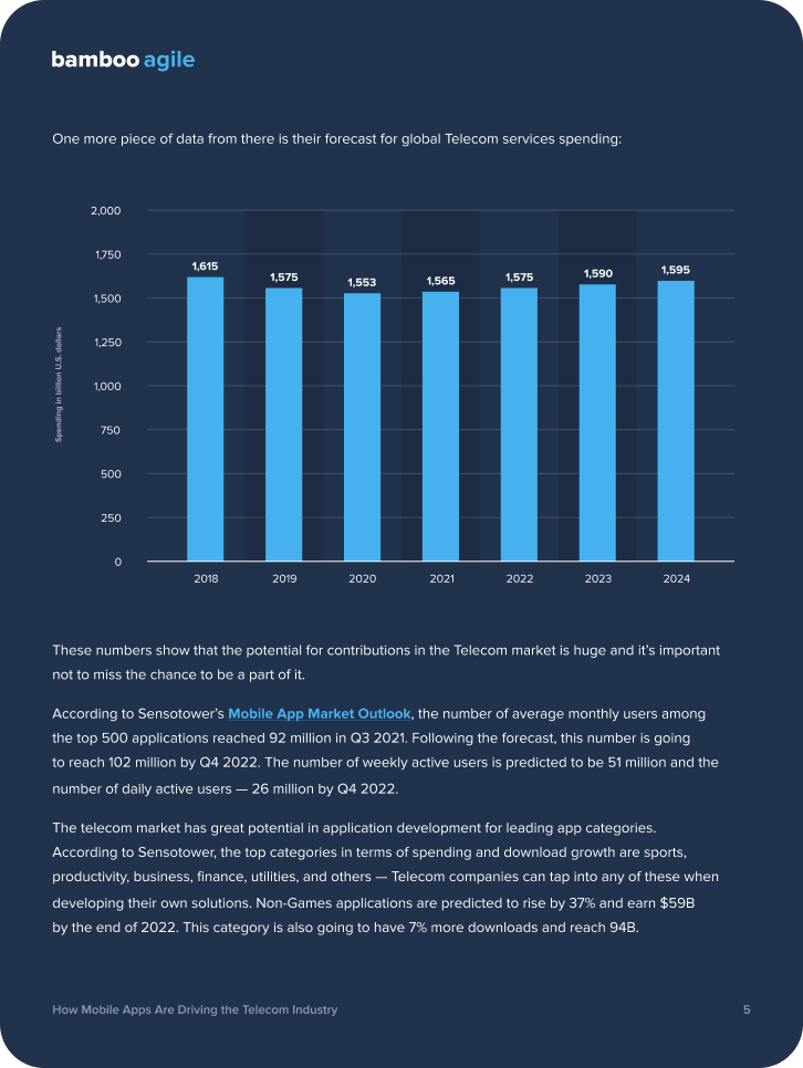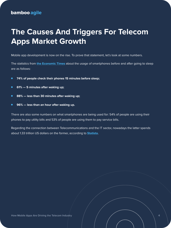 In our recent white paper, we explored the market of telecommunication applications to get the proof of its growth, highlighted the ways of how telco companies can get the profit of developing custom mobile applications, and suggested digital features to implement to stand out from competitors.