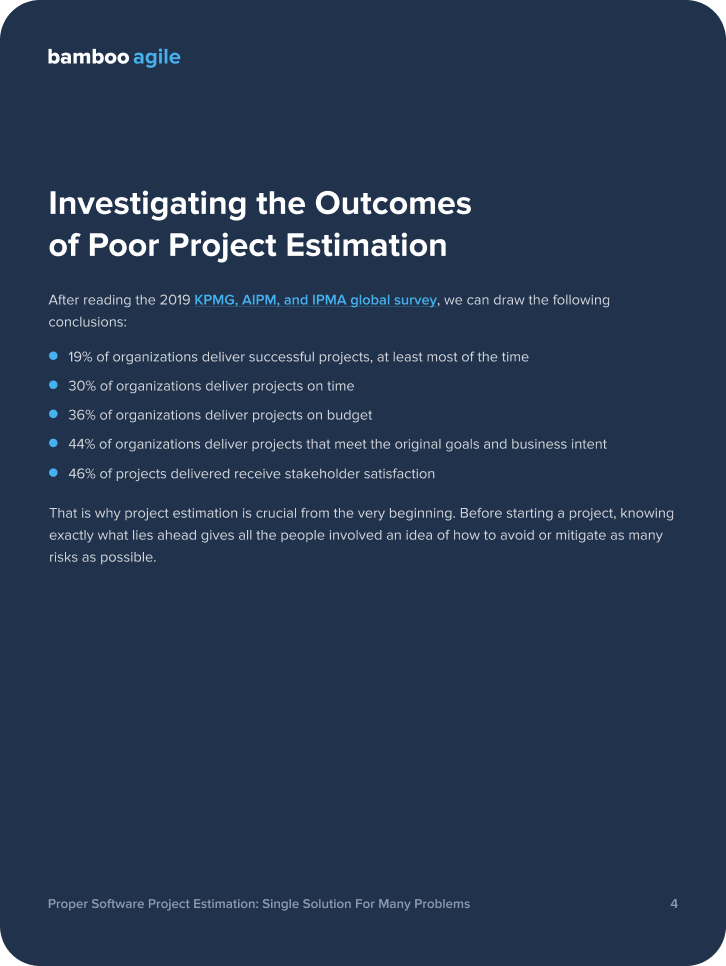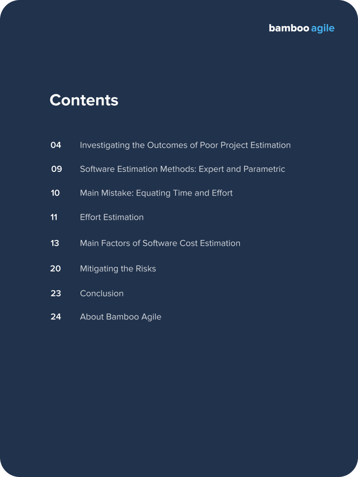 This white paper focuses on why exactly software project estimation is crucial for any software development process and how to approach it in a way that minimizes risks. It explores several software estimation methods, common mistakes, the main factors that go into software estimation, and proven risk management strategies.